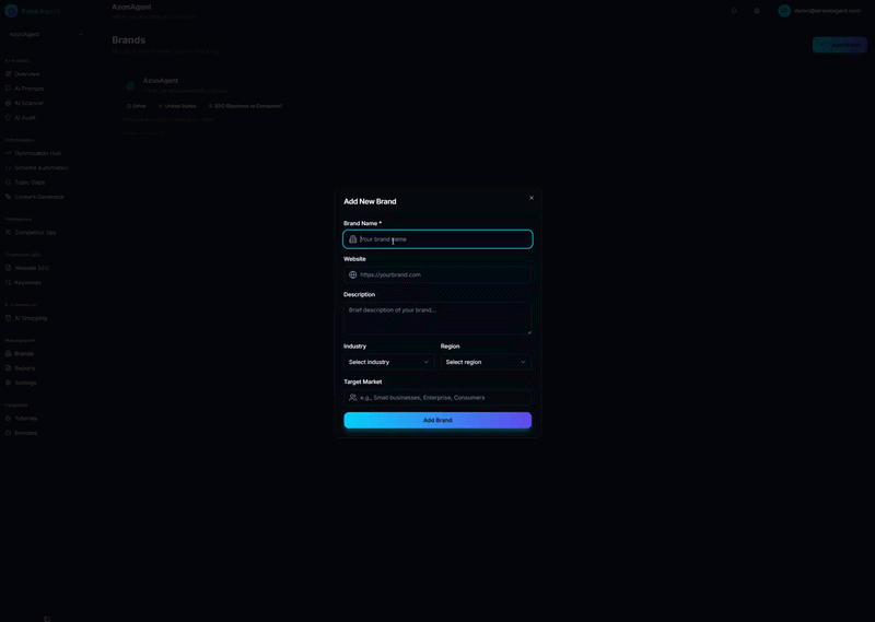 - Zero technical setup required — if you can type a brand name, you can dominate AI search