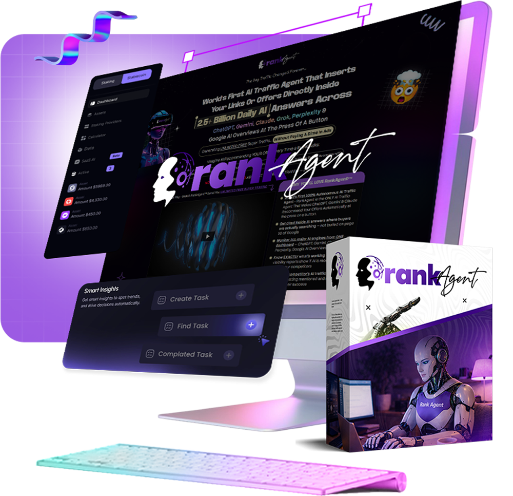 - World's First 100% Autonomous AI Traffic Agent - RankAgent is the ONLY AI Traffic Agent That Makes ChatGPT, Gemini & Claude Recommend Your Offers Automatically at the press on a button.